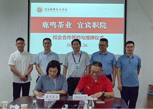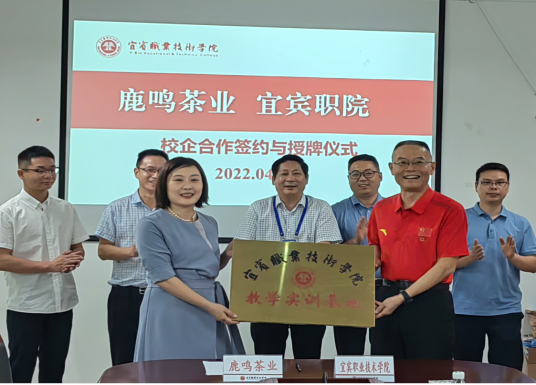4月26日,学院党委副书记、院长伍小兵,副院长周黎军,党委常委、组织部部长陈三军、现代农业学院院长先元华与到访的鹿鸣茶业有限公司董事长张静就产教融合、校企合作进行交流座谈,并举行签约暨授牌仪式。