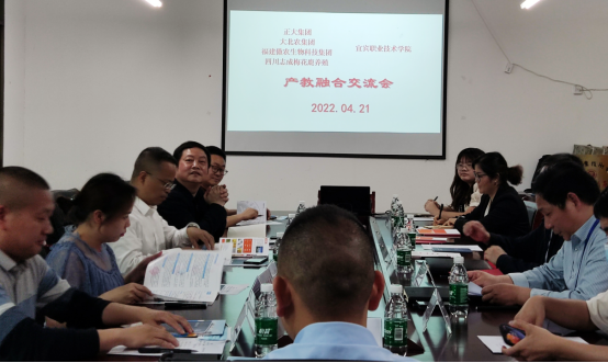 4月21日下午,学院党委书记林世全,党委常委、副院长王志刚与到访的正大集团四川片区副总经理李涛、大北农集团常务副总裁杜江平、福建傲农生物科技集团四川片区总裁余杰及四川志成梅花鹿养殖公司总经理肖莉等企业代表就产教融合、校企合作交流座谈,并举行签约暨授牌仪式。