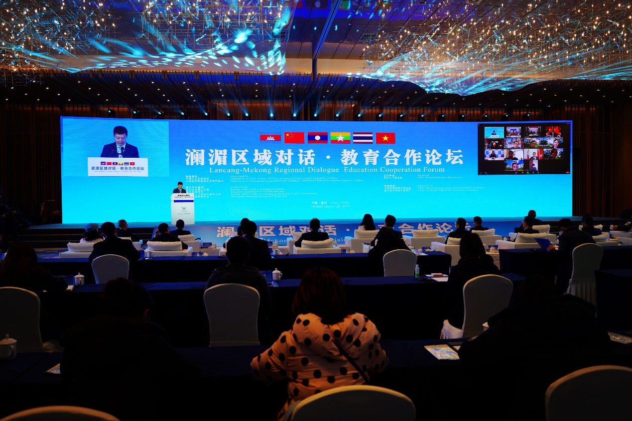 根据“澜湄区域对话·教育合作论坛”举办机制,为加快宜宾南亚、东南亚国际留学生基地建设,推动“成渝地区双城经济圈—澜湄地区职业教育合作联盟”建设,扩大宜宾对外开放,提升国际知名度,2022年1月20日上午,以“同饮一江水、共赢新时代”为主题的“澜湄区域对话·教育合作论坛”在宜宾恒旭大酒店开幕。论坛主会场由宜宾市人民政府副市长罗春涛主持。省外事办副主任、一级巡视员张涛,宜宾市委副书记廖文彬,教育厅二级巡视员王羽等领导出席论坛开幕式。