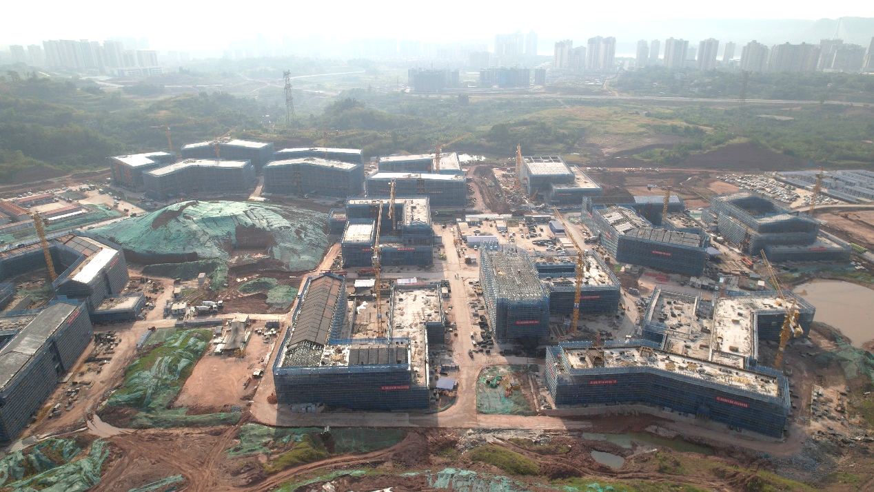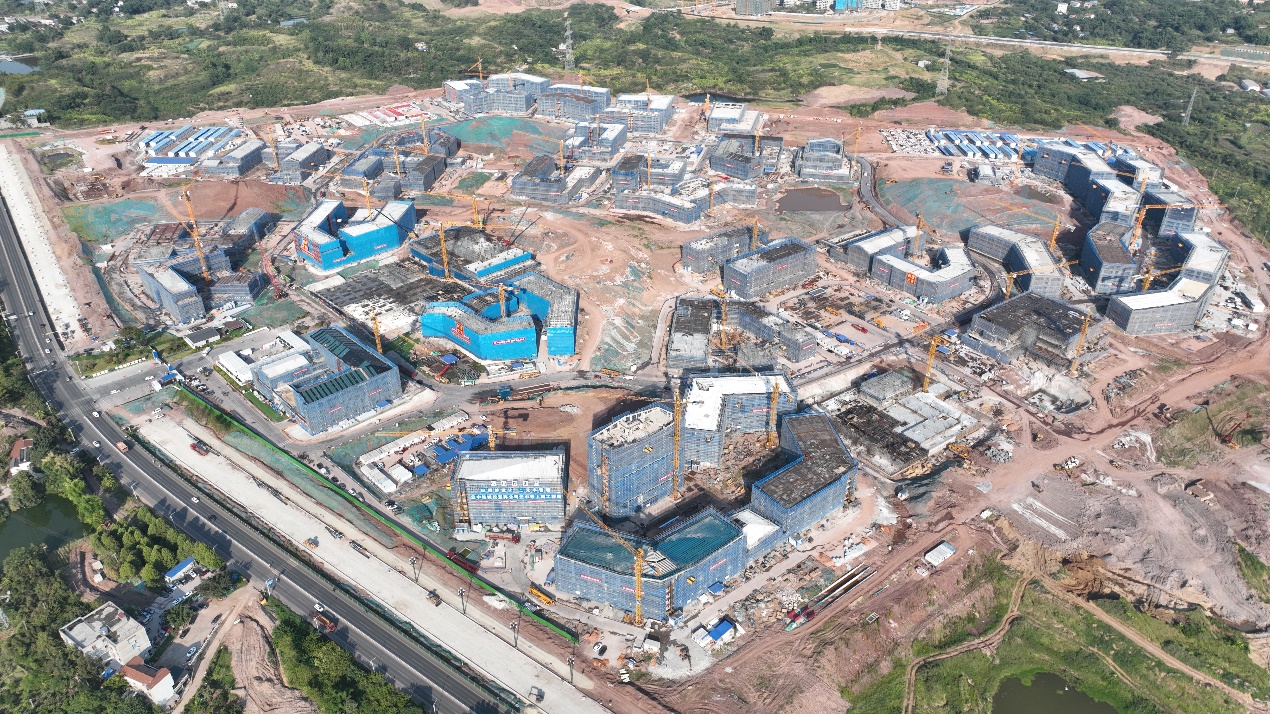 截至8月30日,新校区建设已开工51栋,主体结构封顶34栋,包括行政办公楼、现代农学院、五粮液技术与食品工程学院、汽车与轨道交通学院、智能制造学院、职工食堂、风雨操场、综合教学楼B、新能源电池学院、1#——20#宿舍楼、东食堂、人文学院、产学研实训基地、国际学院、职工之家。其余楼栋正在加快建设,电子信息学院进入最后一层施工,文创与旅游学院高跨区域差1层半,建环学院主体结构基本完成,图书馆地下室及1-2层主体完成,大礼堂1-2层主体完成,共享实训1-3层主体完成,体育馆基础完成。 按照施工单位进度计划安排,8月完成新校区主体结构80%,目前已圆满完成施工任务既定目标。