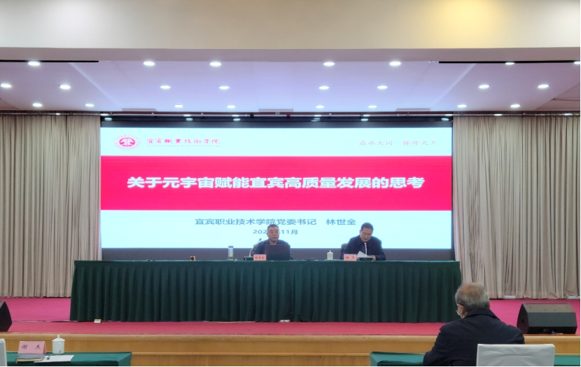 11月7日下午,在宜宾市委党校静池会场,我院党委书记林世全应邀为宜宾市发展和改革委员会干部职工作题为《关于元宇宙赋能宜宾高质量发展的思考》的社会化选学专题讲座。为便于参训干部职工学习和提升学习效果,应参训单位要求,此次讲座采取“送教上门”的方式举行。讲座由宜宾市发展和改革委员会党组成员、副主任、市铁建办主任谢杰主持。