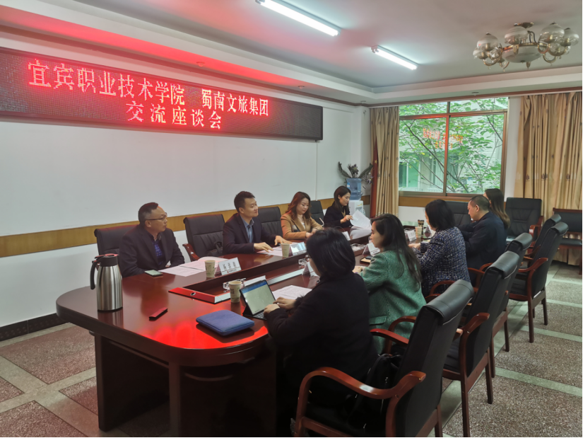 陈林对朱福军一行主动到校对接校企合作事宜表示热烈欢迎,对蜀南文旅集团在我校庆祝建党100周年系列活动中的支持和帮助表示衷心感谢。陈林简要介绍了学校办学历程、专业特色和新校区建设等基本情况,她表示,校企双方具有很大合作空间,希望未来进一步围绕学生就业、产教融合、人才流动挂职等工作,创新合作形式,加强合作交流,实现互惠互利。