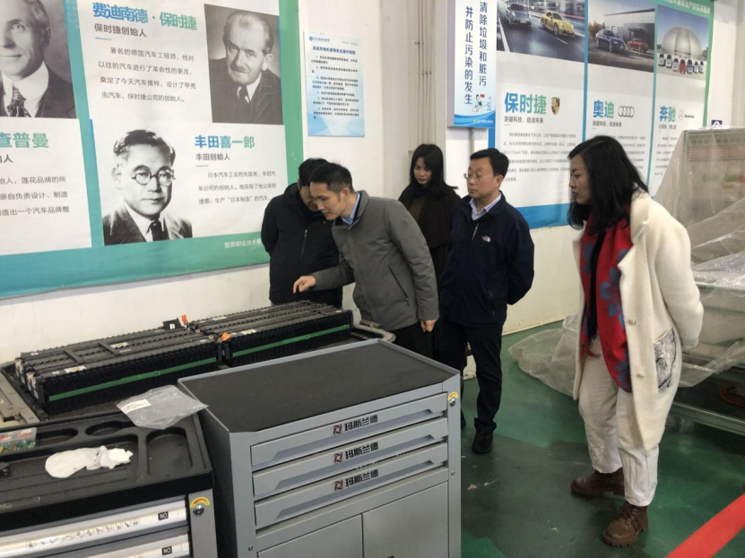 李立国一行首先到我院燃面学院、非物质文化遗产工作室、新能源汽车实训教学基地等地进行了参观考察,详细了解学院在新能源电池方向的专业建设及人才培养情况。