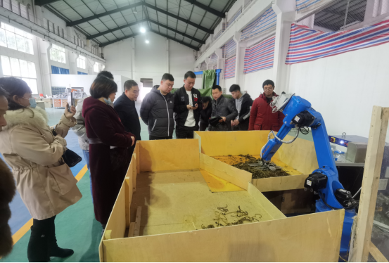12月30日,四川宜宾碎米芽菜有限公司领导专家来校考察我院研发的芽菜杂质智能分离设备。学院党委委员、副院长江仁朝参加了现场操作演示和洽谈会议。